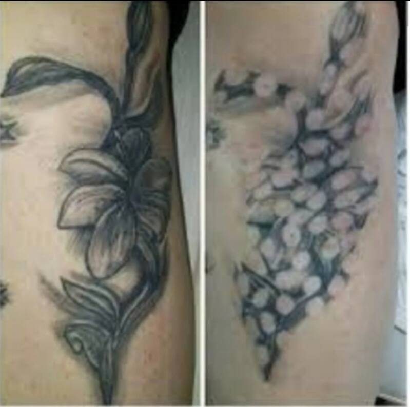 - Tatoeages die behandeld zijn met een laser of een andere methode;